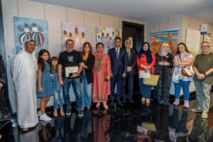 The exhibition was inaugurated by esteemed guests including Ahmed Al Awadhi, Abdul Jabbar Weiss, Majd Faraj, Anjini Prakash Laitu, and Peter Gressman, in the presence of Robin Solomon, General Manager of the hotel, alongside a distinguished gathering of artists, cultural leaders, and members of the creative community.